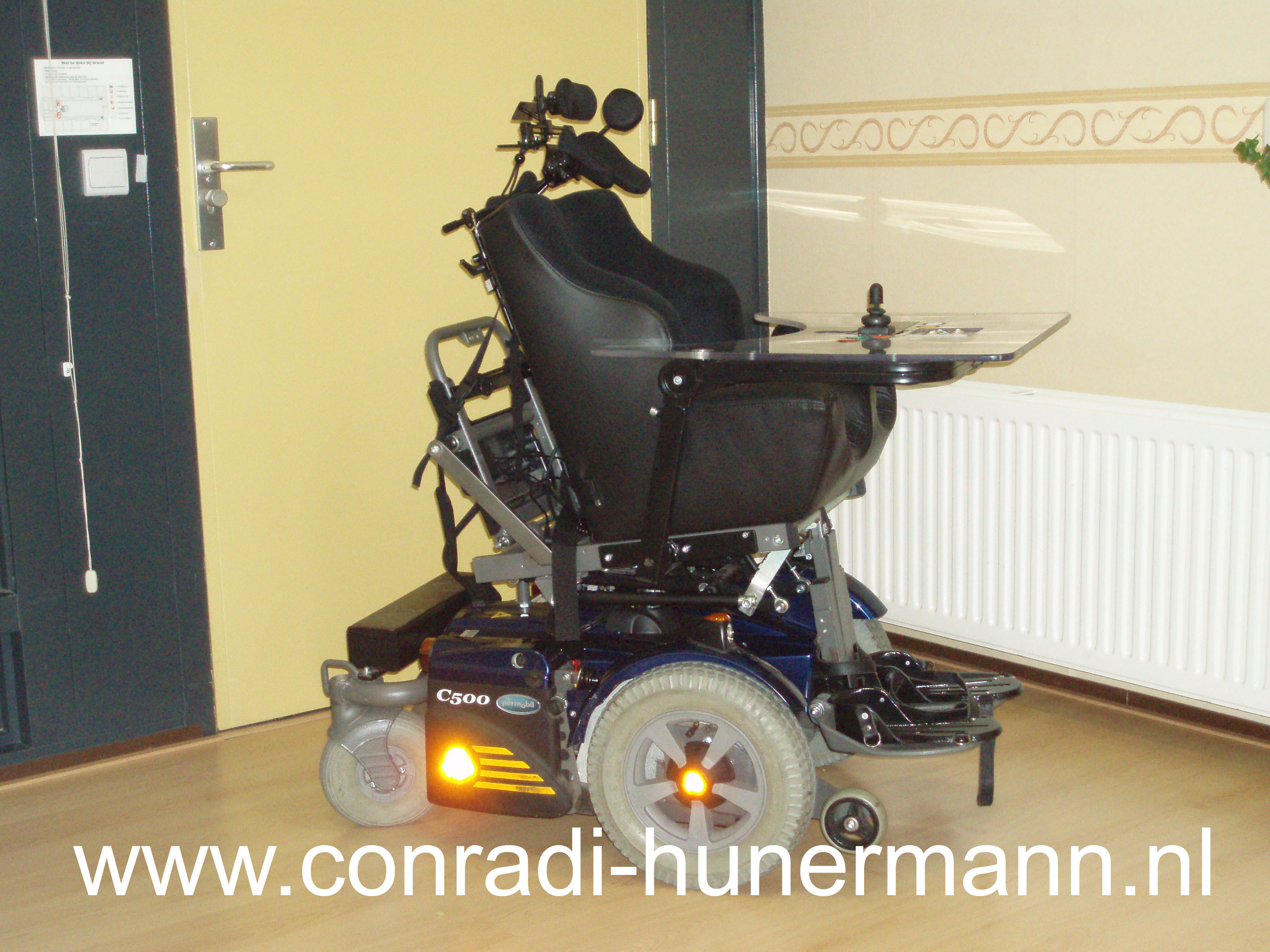Hier staat de C500s (Permobile) mijn elektrische rolstoel waar ik eigenlijk altijd in zit. Met deze rolstoel kan ik overal komen en alles doen wat ik wil. Hij is wendbaar en dus voor binnen- en buitenshuis geschikt. Ik kan lekker met mijn vrienden sporten (hockeyen) of gewoon lekker een wandeling maken.